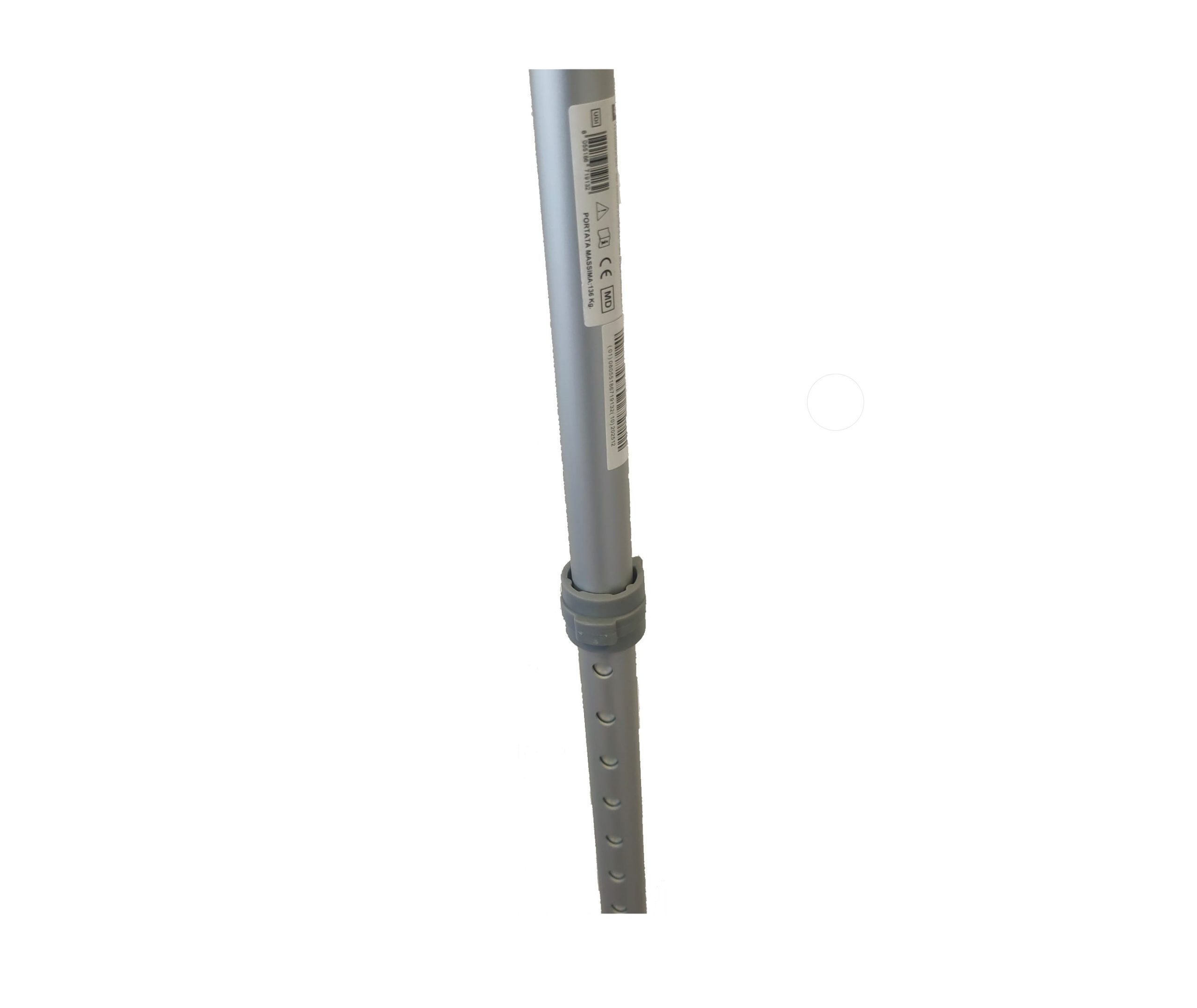 Il cuore delle stampelle ST8 è la canna in alluminio anodizzato. Questo materiale è stato scelto per le sue proprietà meccaniche superiori: è incredibilmente leggero (pesano solo 1,1 kg al paio) ma capace di sostenere una portata massima di 110 kg. La finitura anodizzata assicura inoltre una protezione duratura contro graffi e corrosione, mantenendo l’estetica del prodotto inalterata nel tempo.